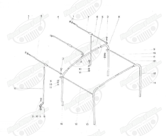 arquillaje completo de 13 piezas para cj3b militar , de nueva fabricacion, desmontable, se entrega imprimado.