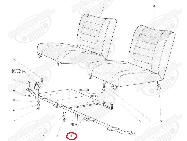 barra sujeccion asientos viasa 2º serie 1974-1982, copia exata de la original para los jeep viasa cj3b y cj6 con deposito de combustible en el lado del acompañante, original del modelo civil, se puede poner en el militar.
