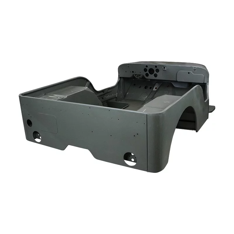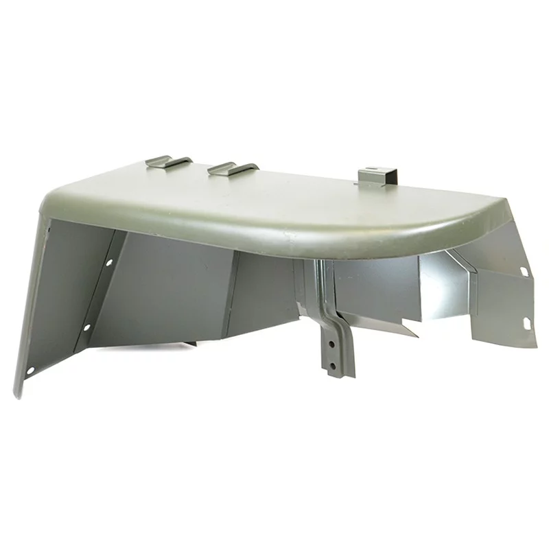 Orificio para el gato del remolque y refuerzo para el soporte del bidón en el panel trasero; guantera; compartimento del depósito de combustible redondeado en el suelo delantero; estampado de los pestillos redondos de la caja de herramientas en los pasos de rueda traseros; bastidor del asiento trasero tipo Willys MB; tapas acanaladas de la caja de herramientas; soporte vertical de la luz trasera en el panel trasero; nervaduras de refuerzo en los pasos de rueda traseros.