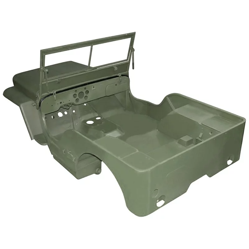 El kit de carrocería incluye: una carrocería Willys MB tipo E, una parrilla estándar, un capot de motor, las aletas delanteras izquierda y derecha y un marco de parabrisas ensamblado.
